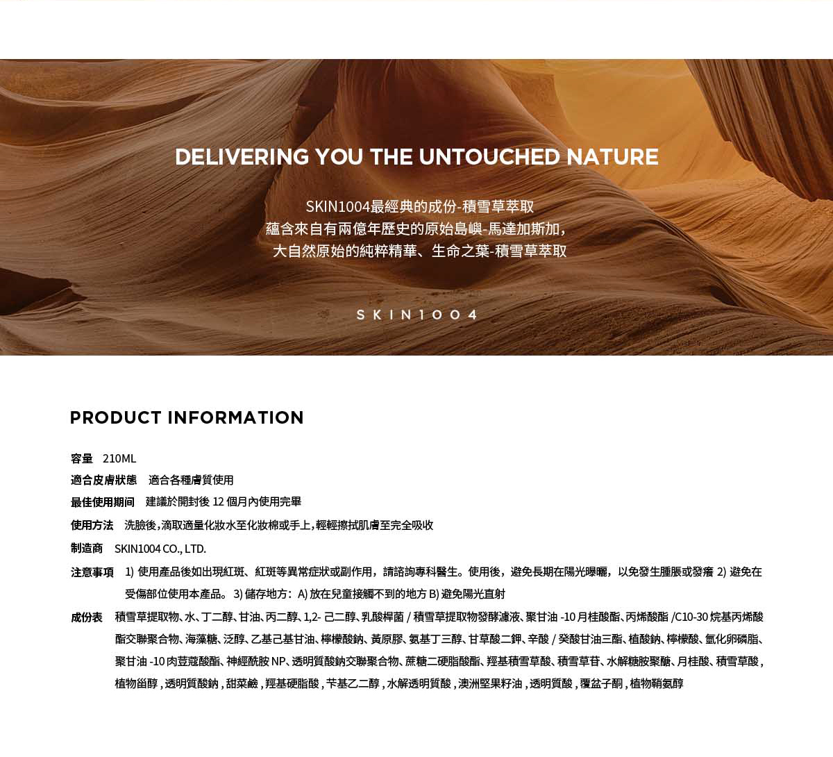品名:SKIN1004理膚天使 馬達加斯加積雪草[逆齡]-精萃化妝水+集中修護精華