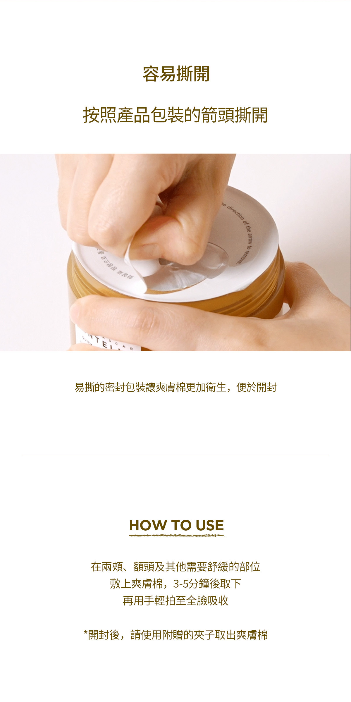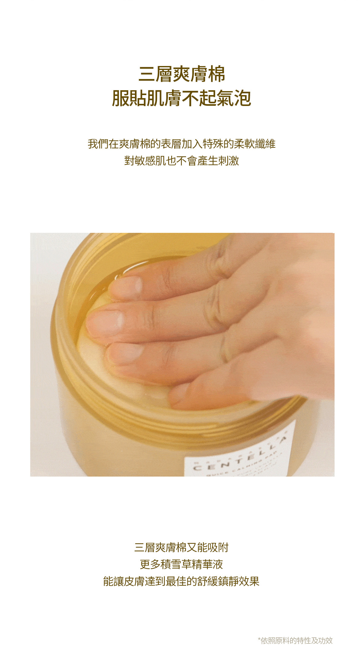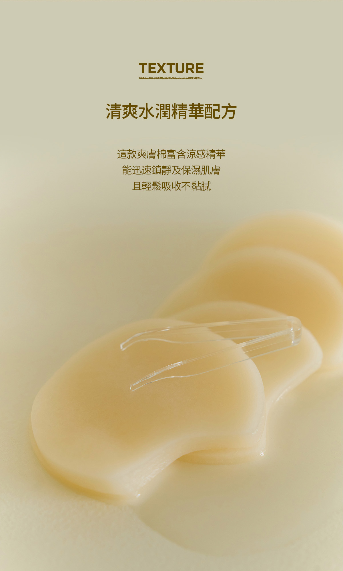 -三層壓紋棉片能鎖住修護精華為肌膚帶來冰涼的爽膚觸感