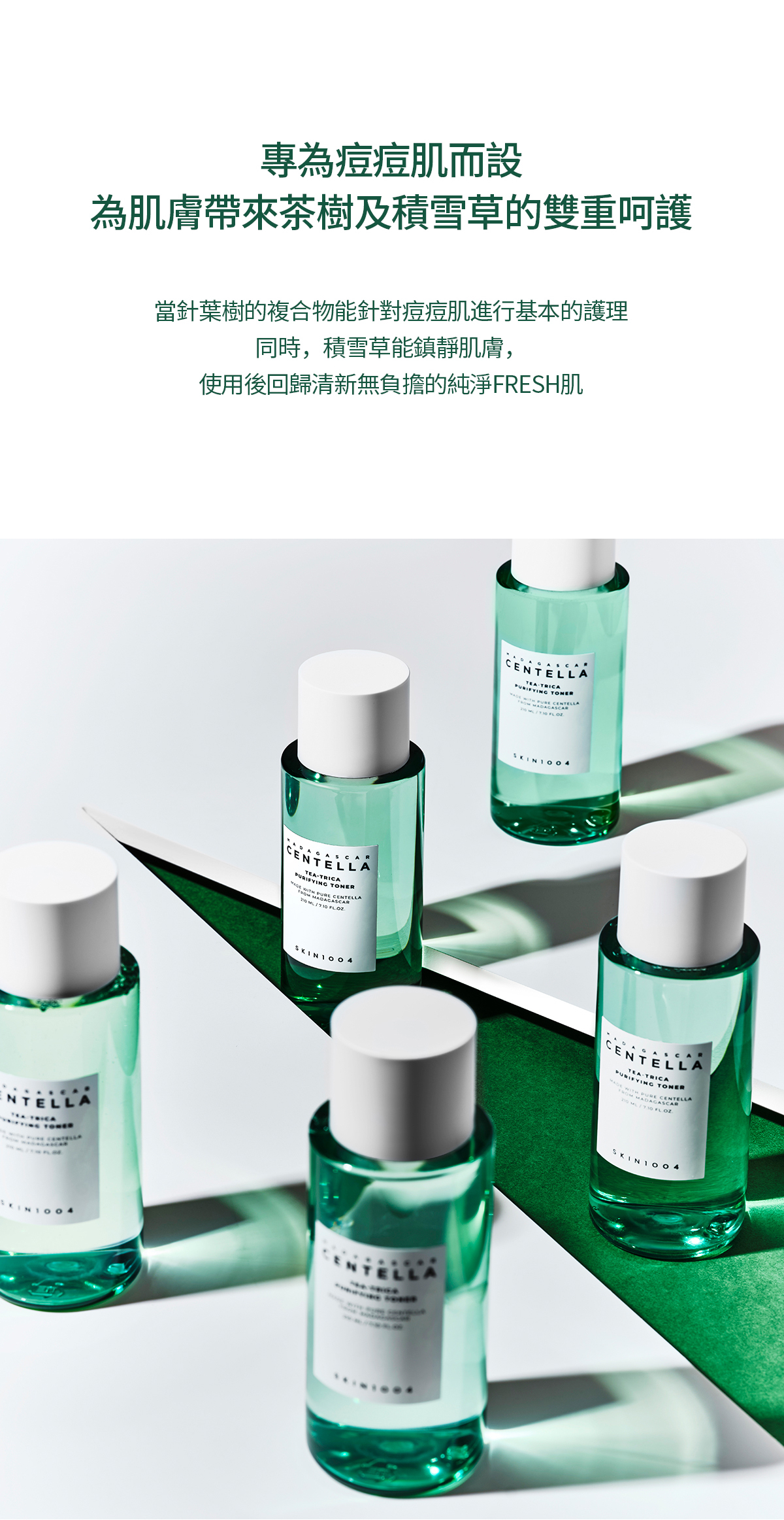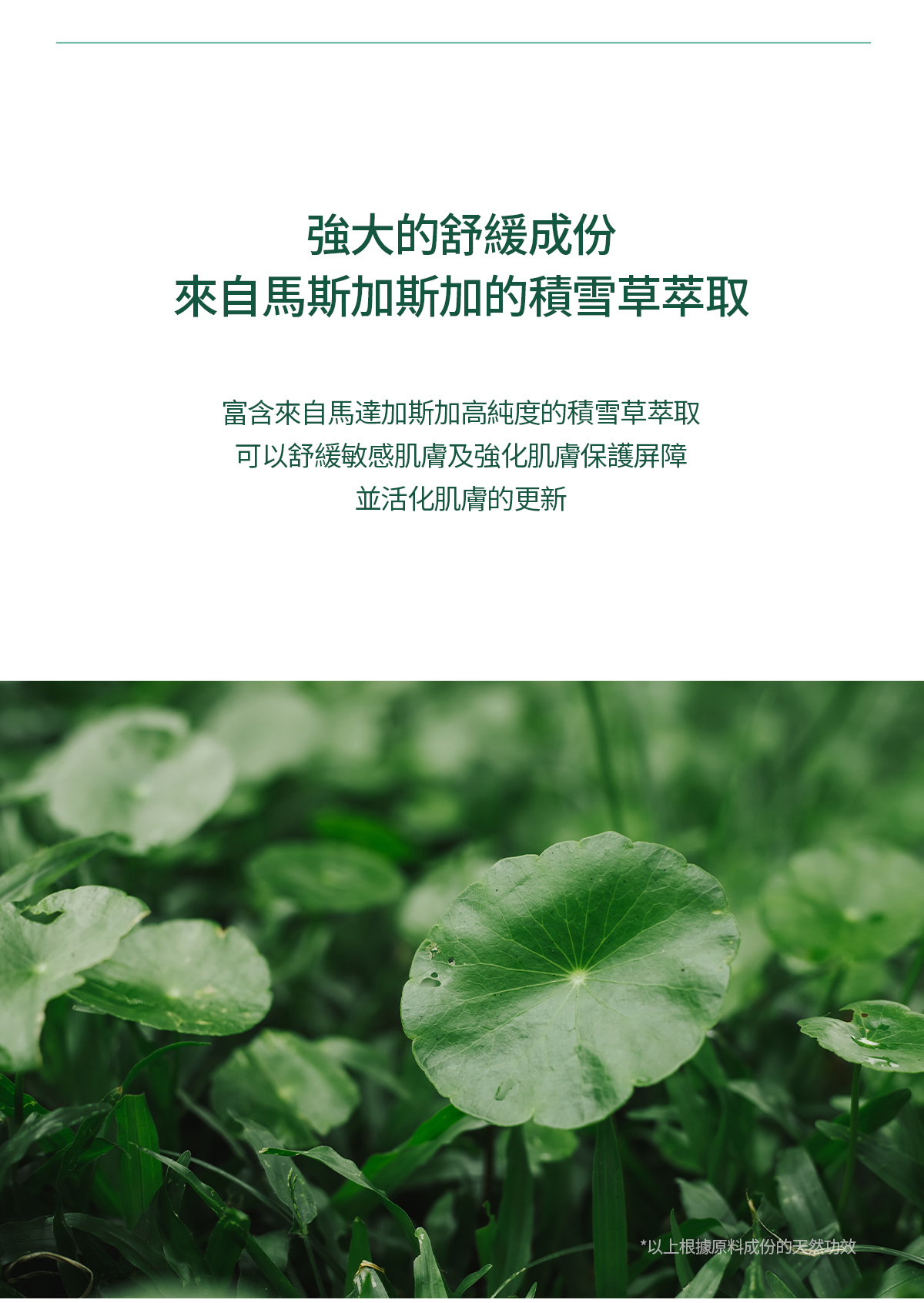 -茶樹可針對痘痘肌進行基本的護理,同時,積雪草能鎮靜肌膚,