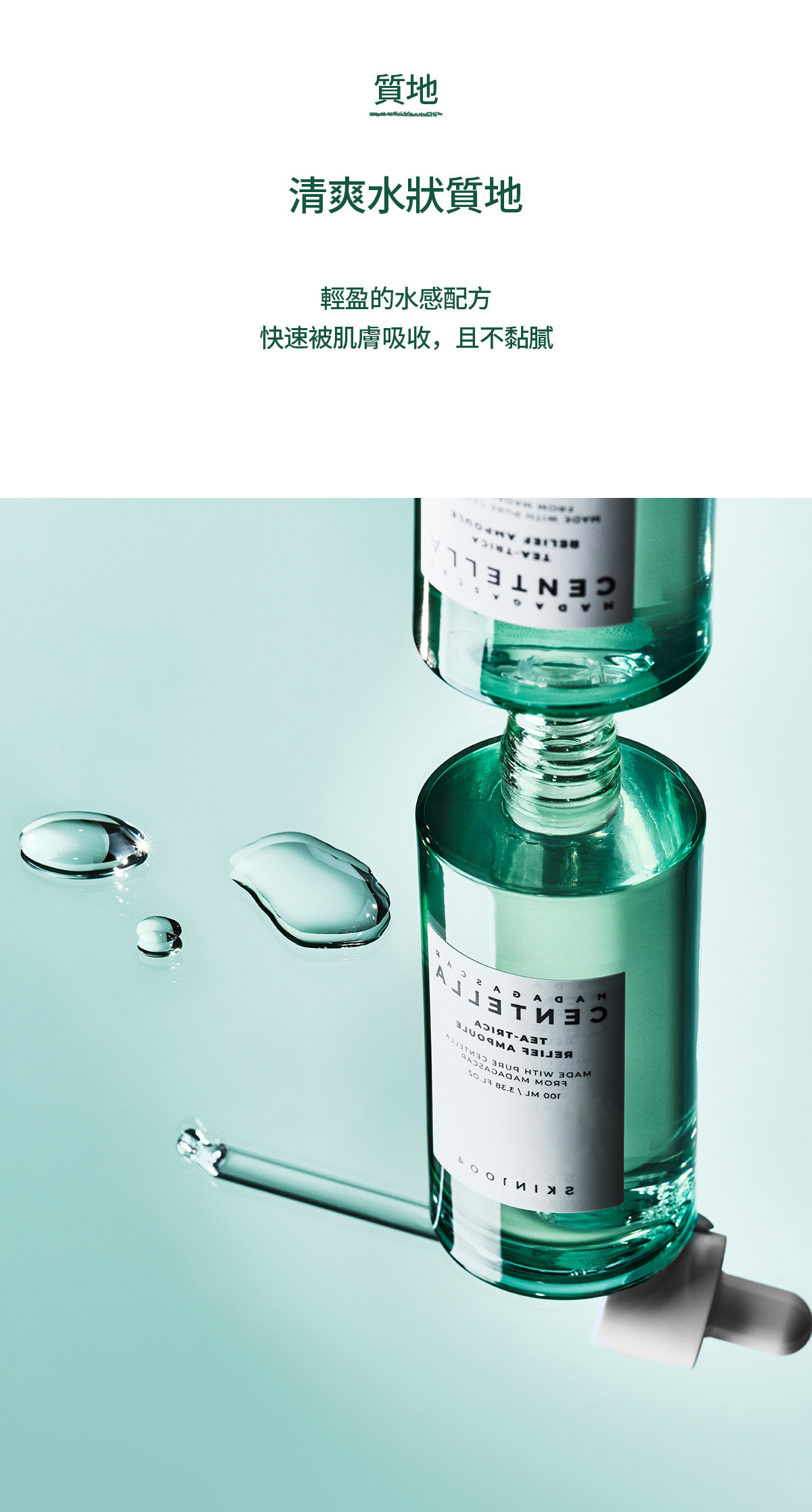 -清爽水狀質地,快速被肌膚吸收,且不黏膩
