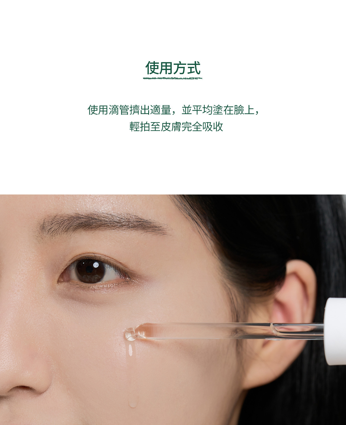使用滴管擠出適量,並平均塗在臉上,輕拍至皮膚完全吸收