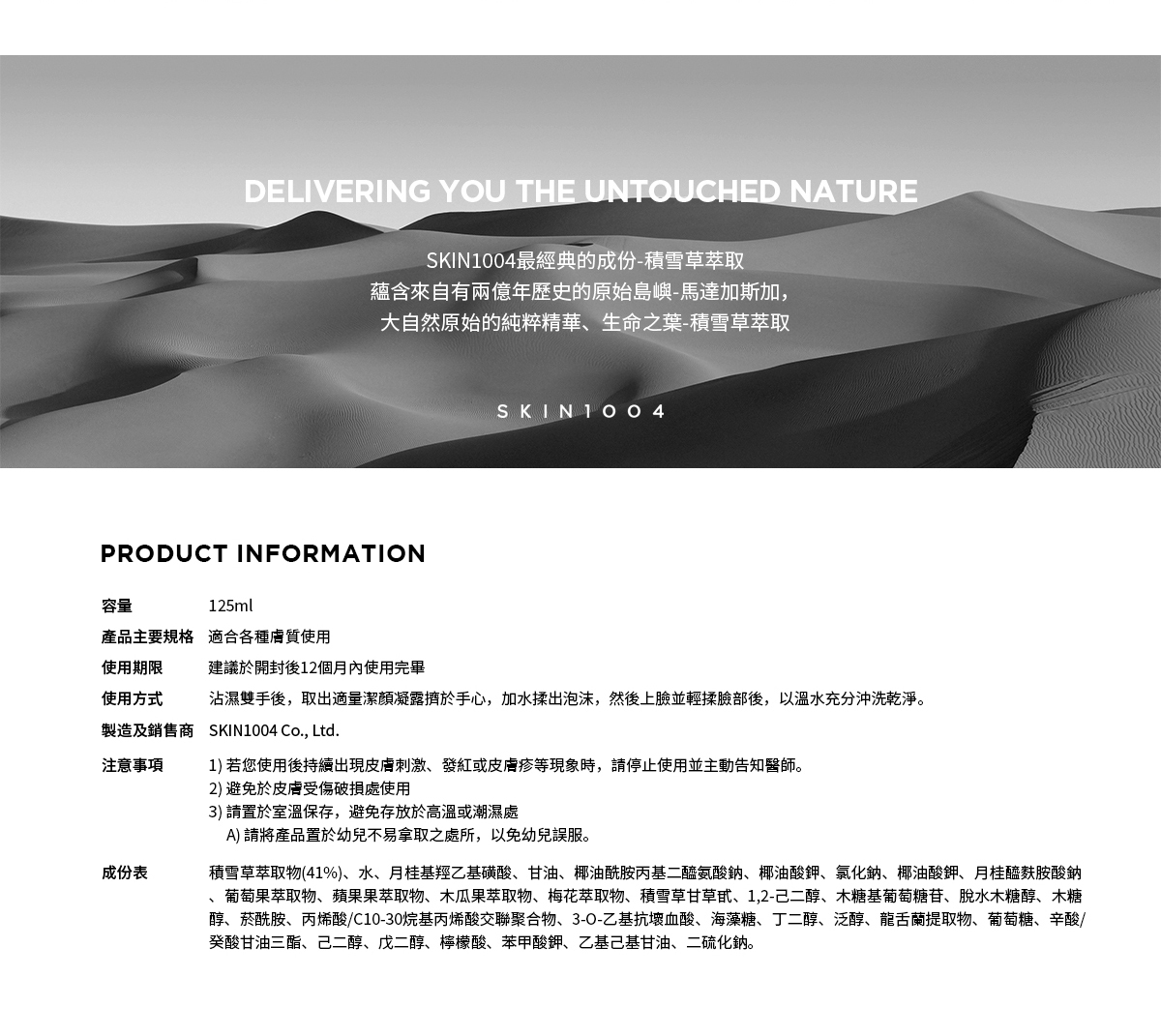 品名:SKIN1004理膚天使 馬達加斯加積雪草[美白]-潔顏凝露