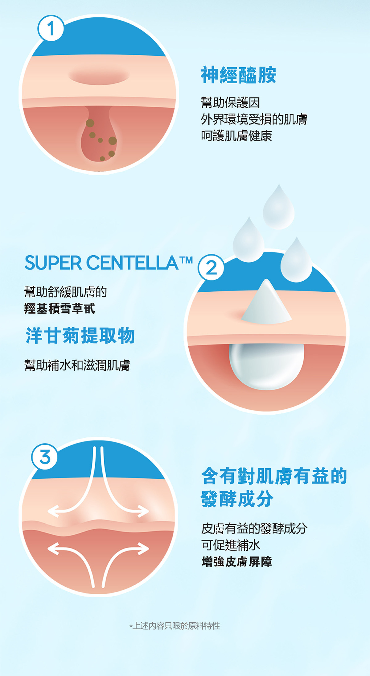 SUPER CENTELLA™,幫助補水和滋潤肌膚
