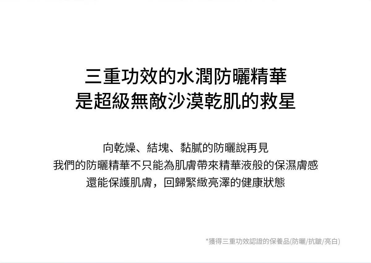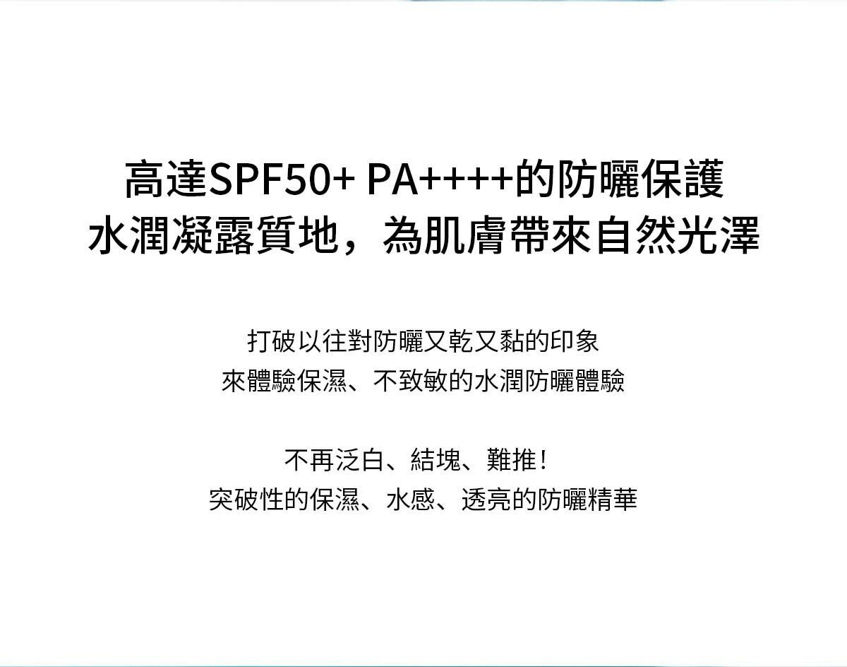 突破性的保濕、水感,透亮的防曬精華