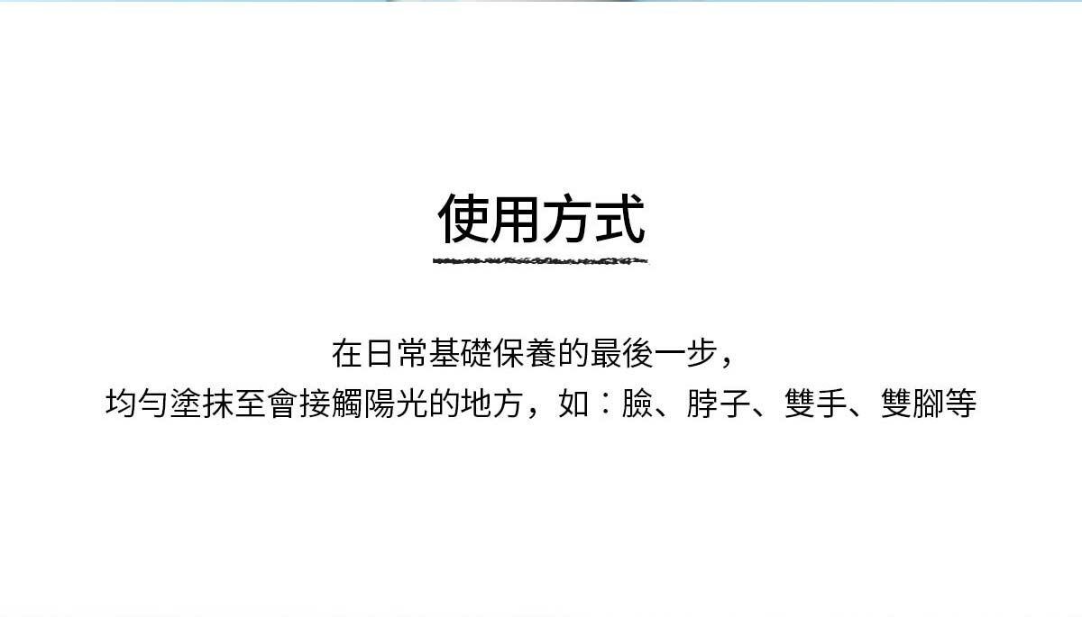 在日常基礎保養的最後一步,均勻塗抹至會接觸陽光的地方