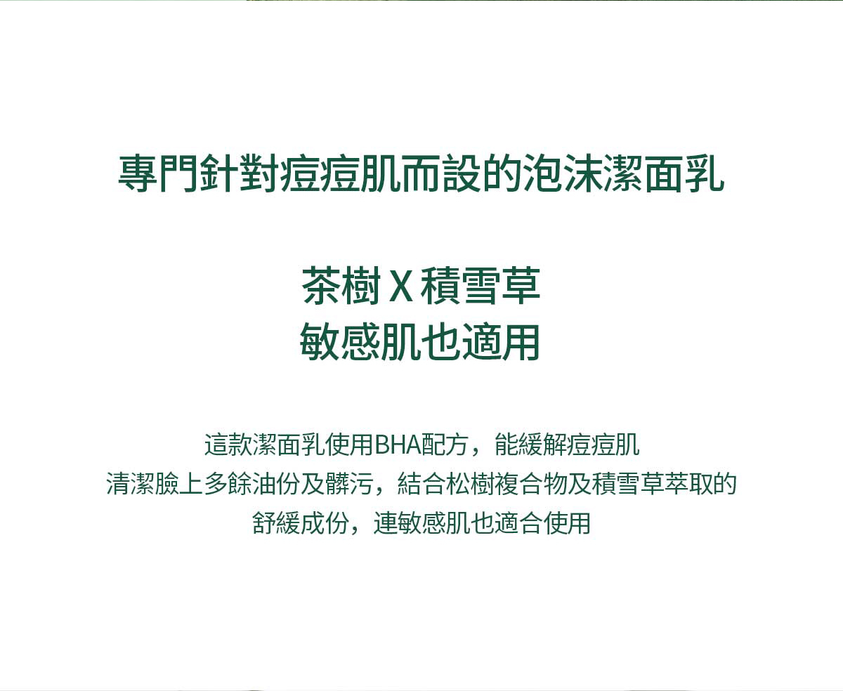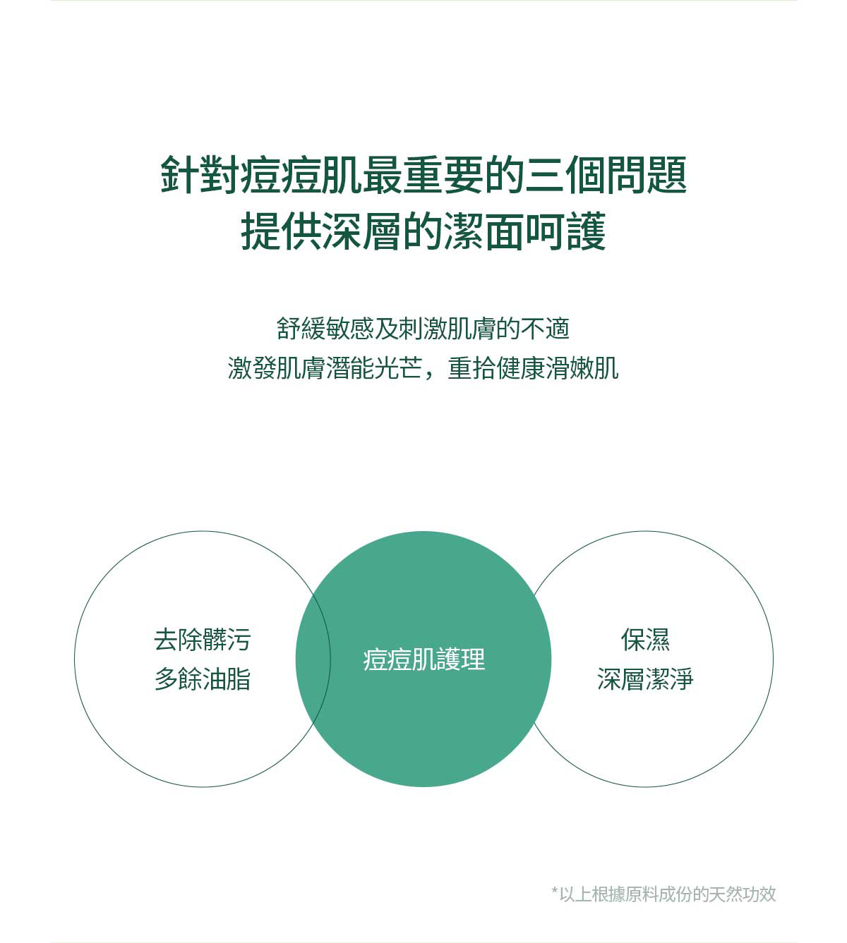 -結合松樹複合物及積雪草萃取的舒緩成份,天然呵護發炎痘痘肌膚