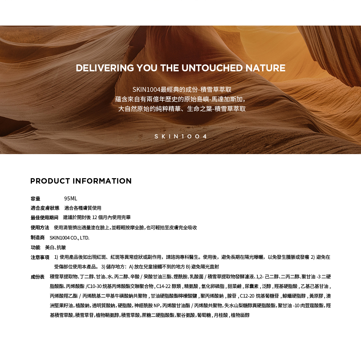 品名:SKIN1004理膚天使 馬達加斯加積雪草逆齡 集中修護精華 95ml