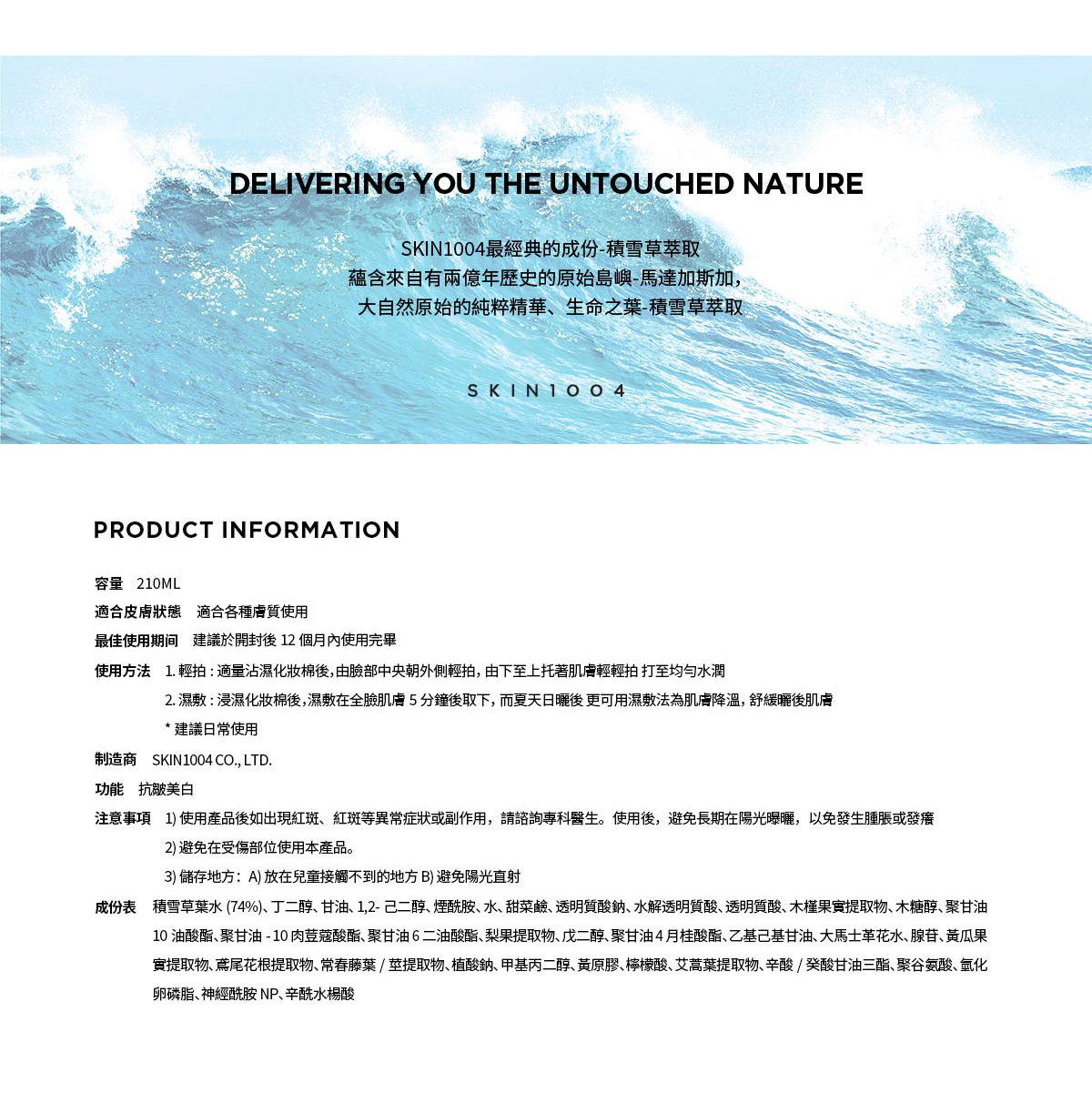 品名:SKIN1004理膚天使 馬達加斯加積雪草[玻尿酸]-光彩爽膚水 210ml