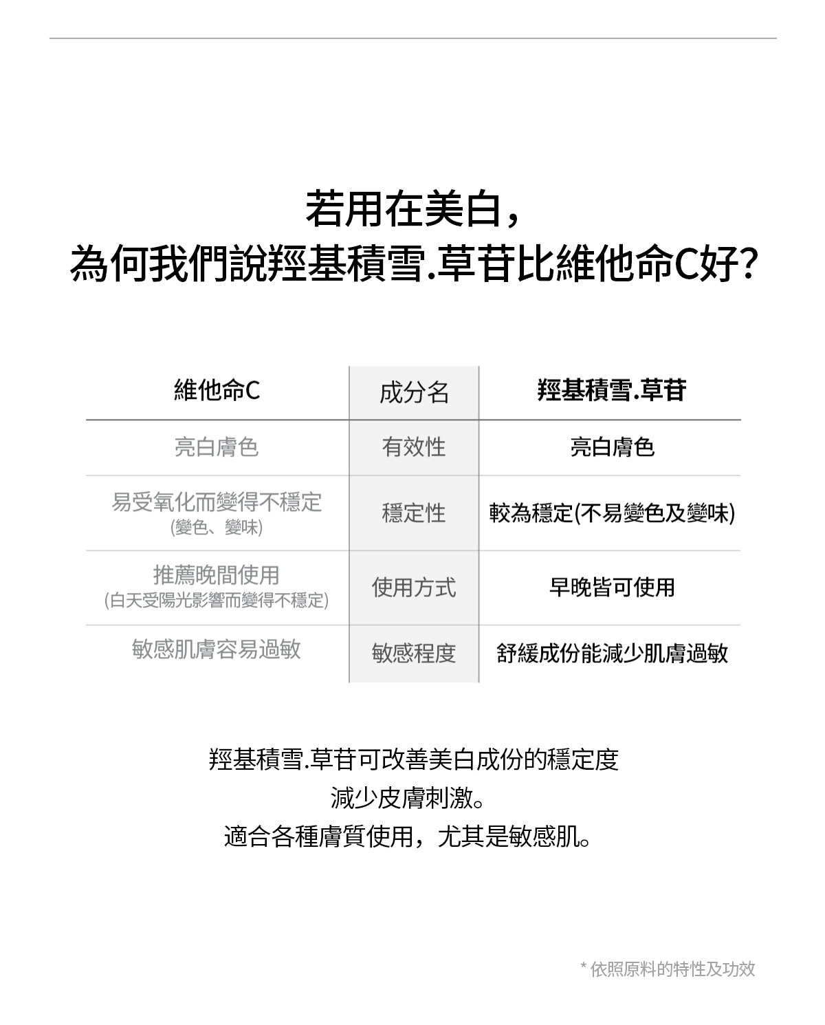 - 獨家美白成份-「美白積雪草甙MW™」(Madewhite™)