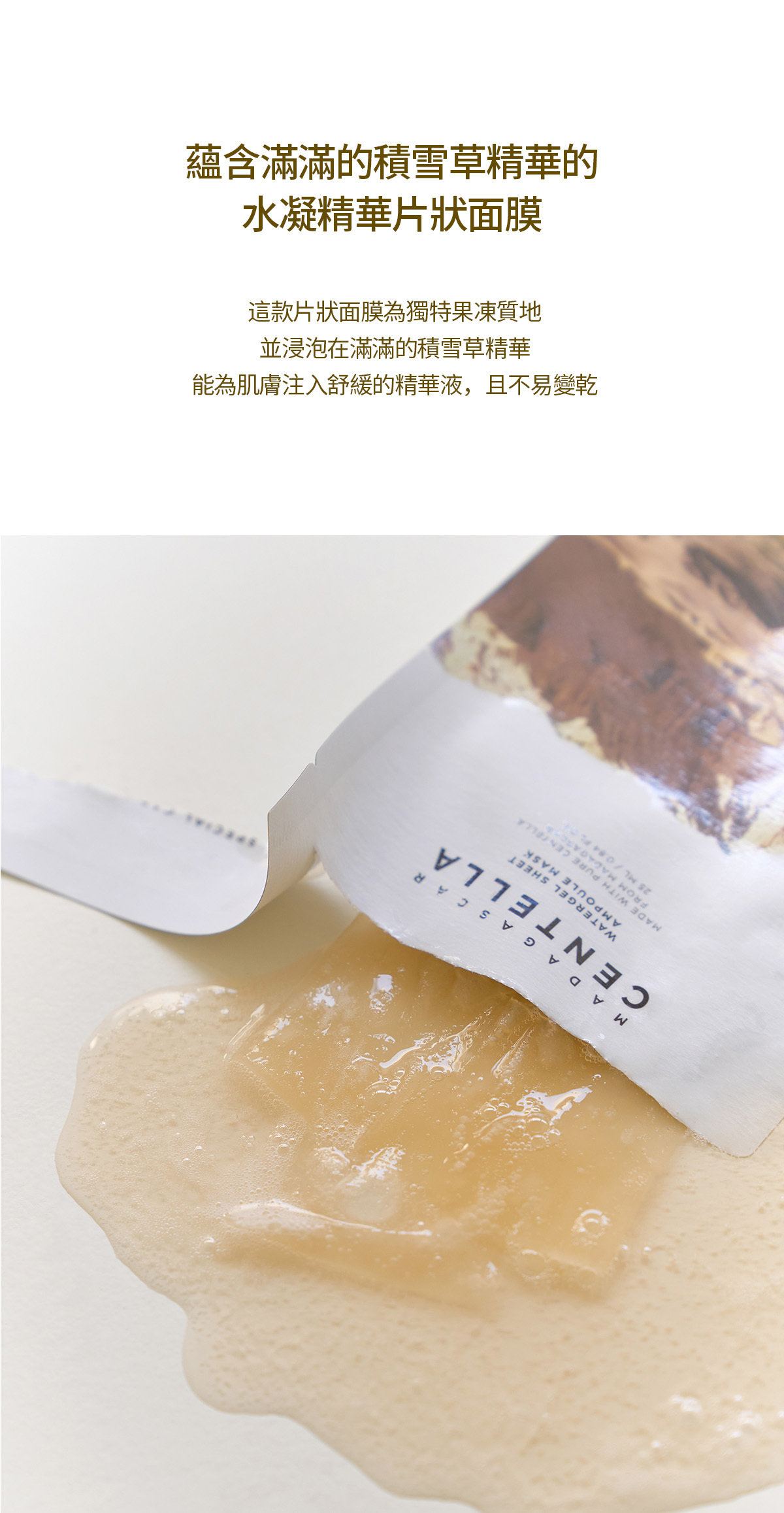 -獨特果凍質地能為肌膚注入舒緩的精華液,且不易變乾