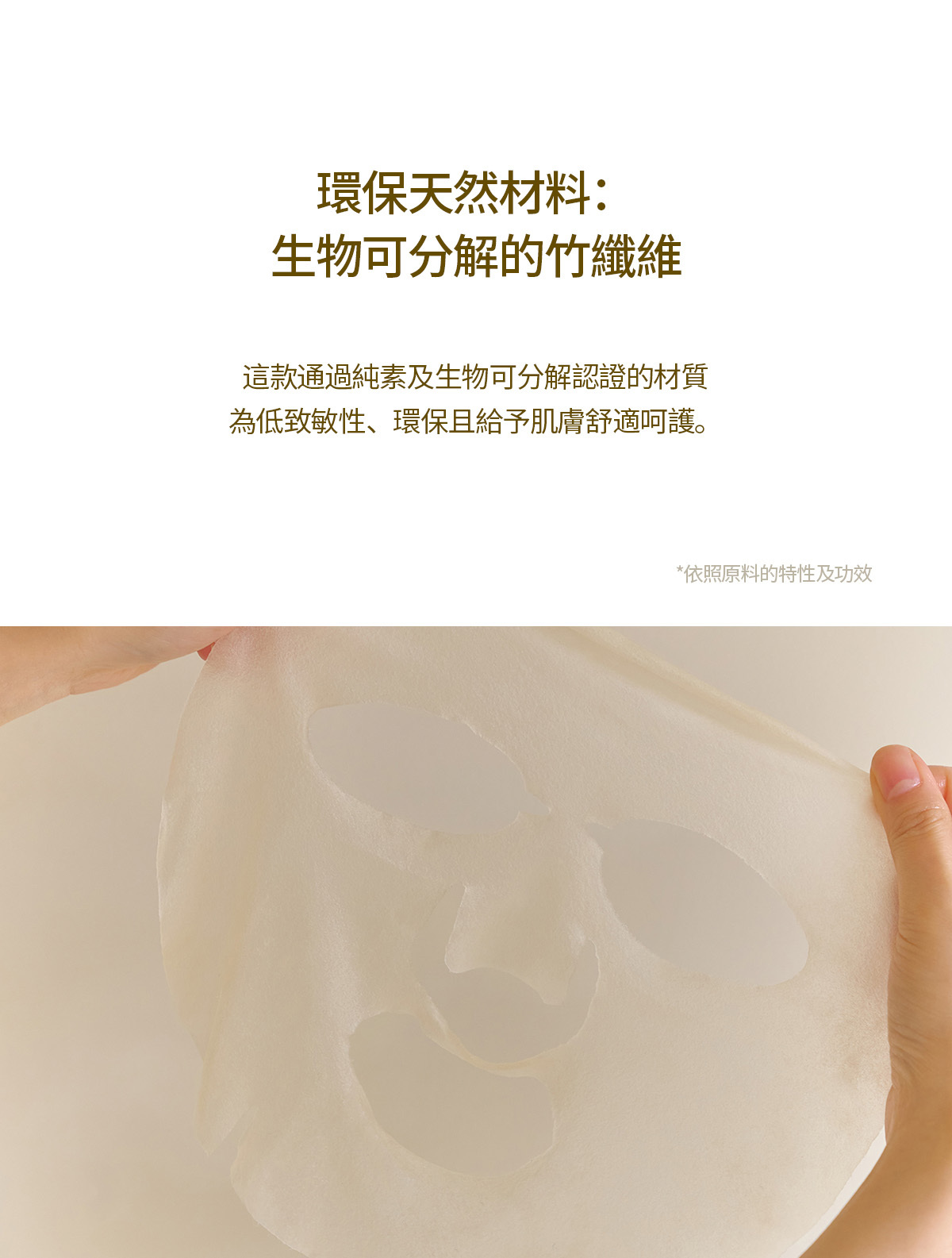 -由天絲及竹纖維製作而成能吸附高含量的精華液,給予肌膚滿滿的保濕效果