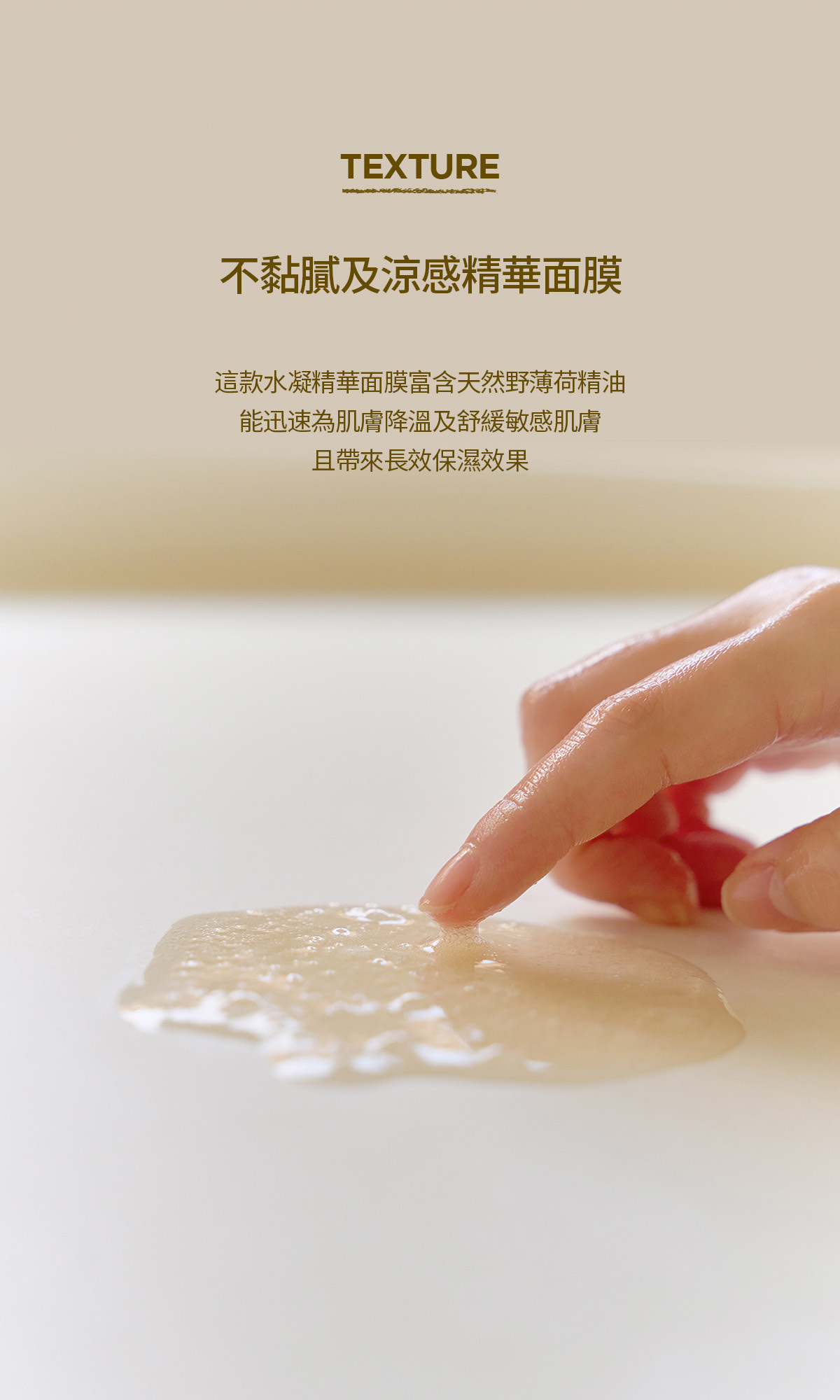 -富含積雪草提取物和薄荷精油成分迅速為肌膚降溫及舒緩敏感肌膚