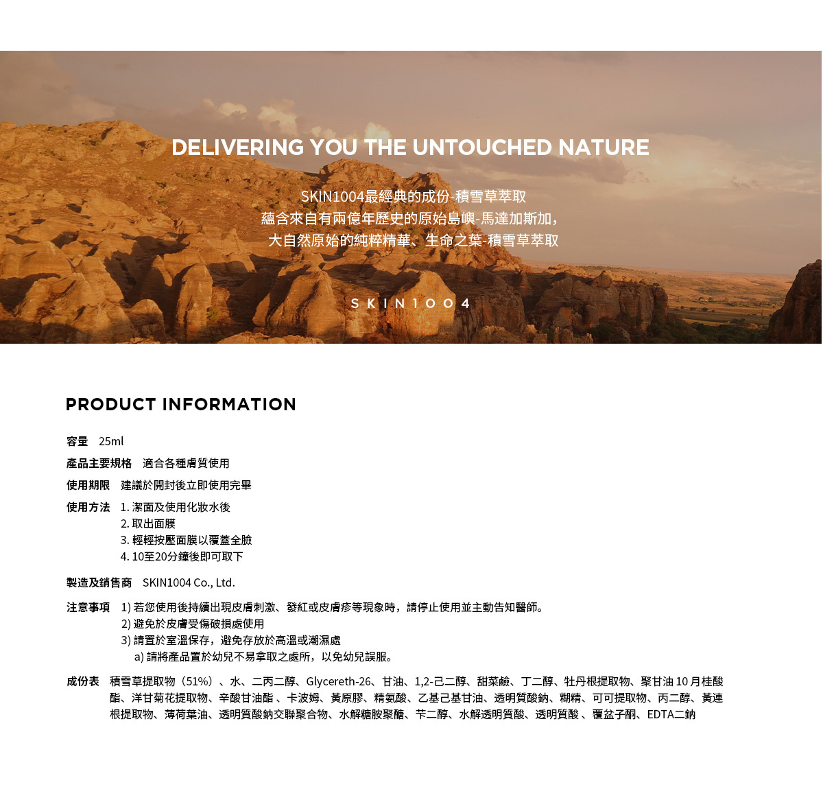 品名:SKIN1004理膚天使 馬達加斯加積雪草-水凝精華面膜 25ml 1片