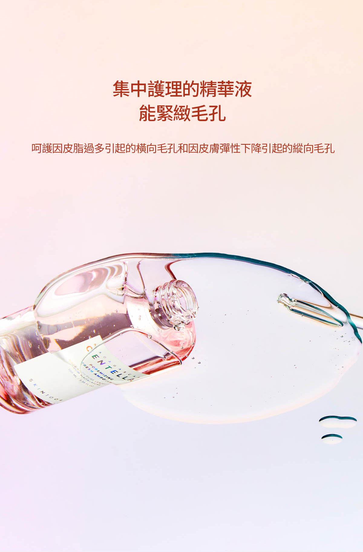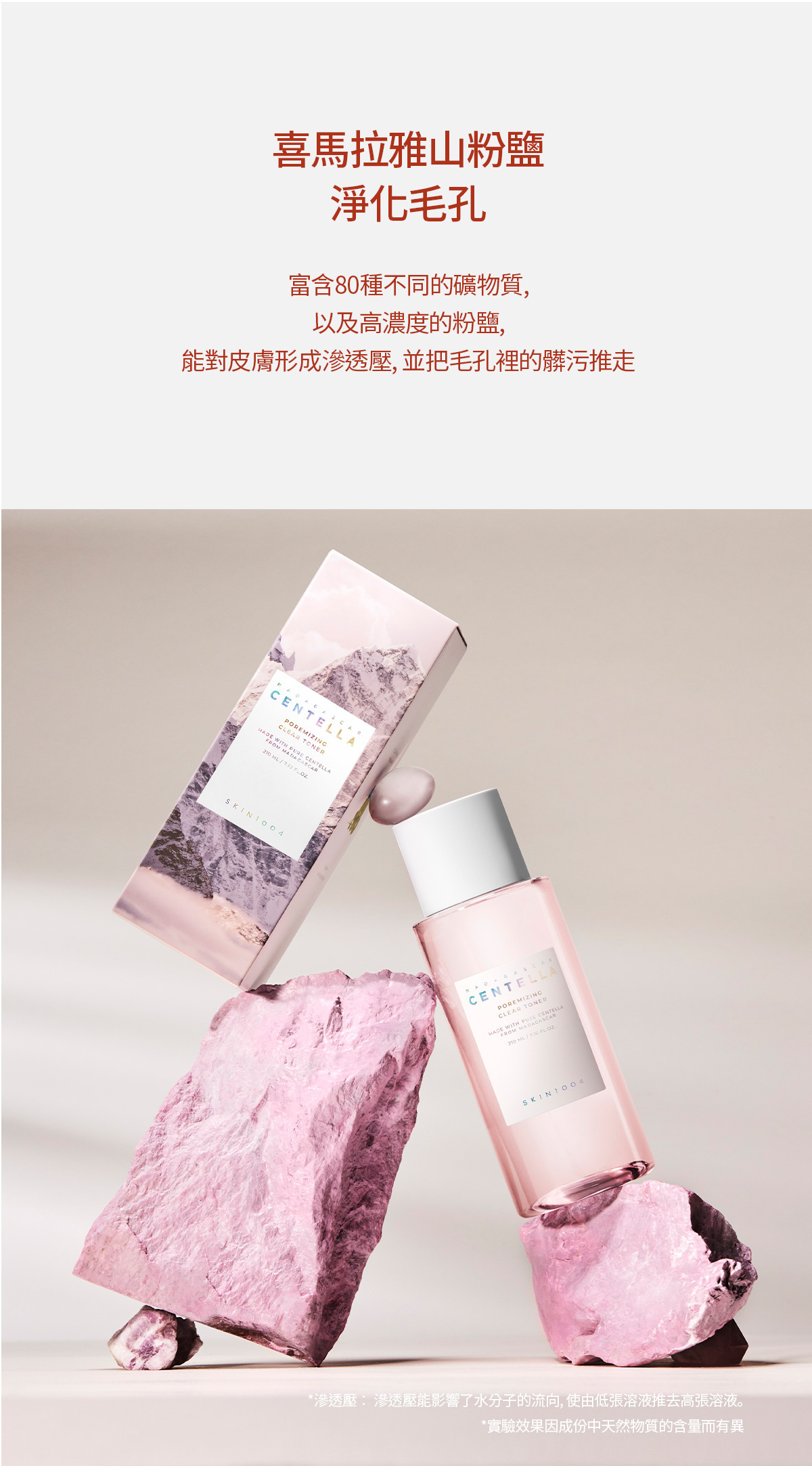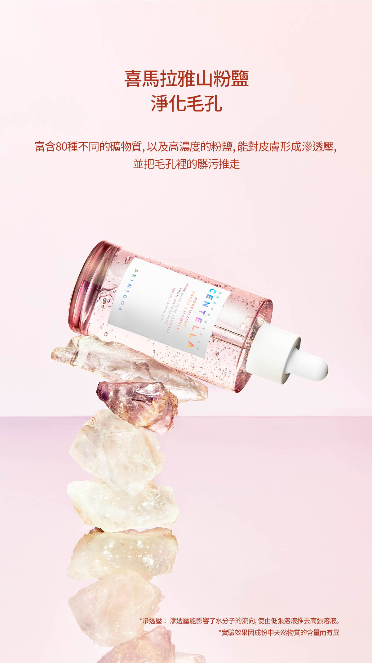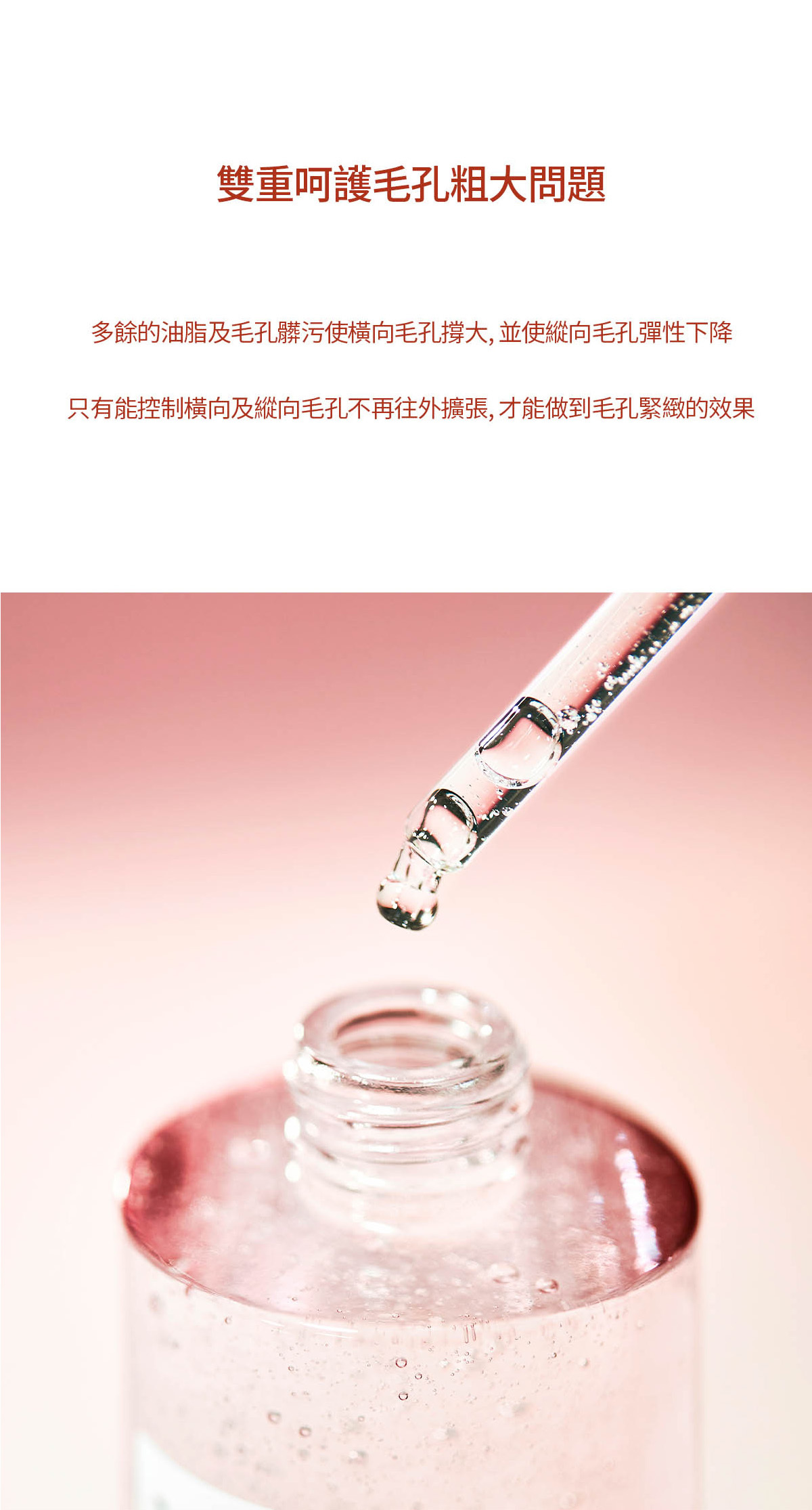 - 粉色鹽+肽9複合物相遇,呵護因皮脂過多引起的橫向毛孔和因皮膚彈性下降引起的縱向毛孔
