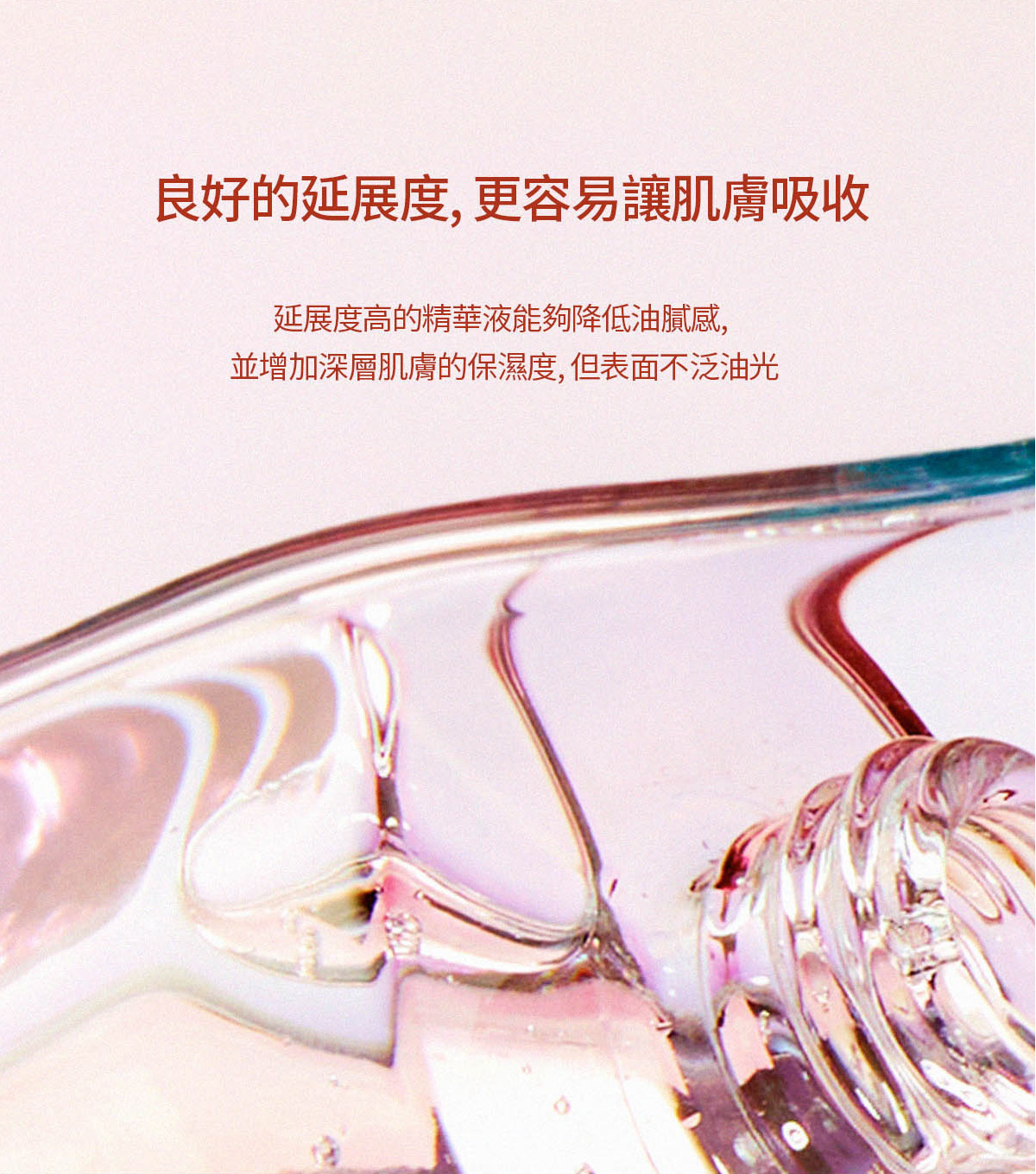 -延展性高,不黏膩質地容易讓肌膚吸收