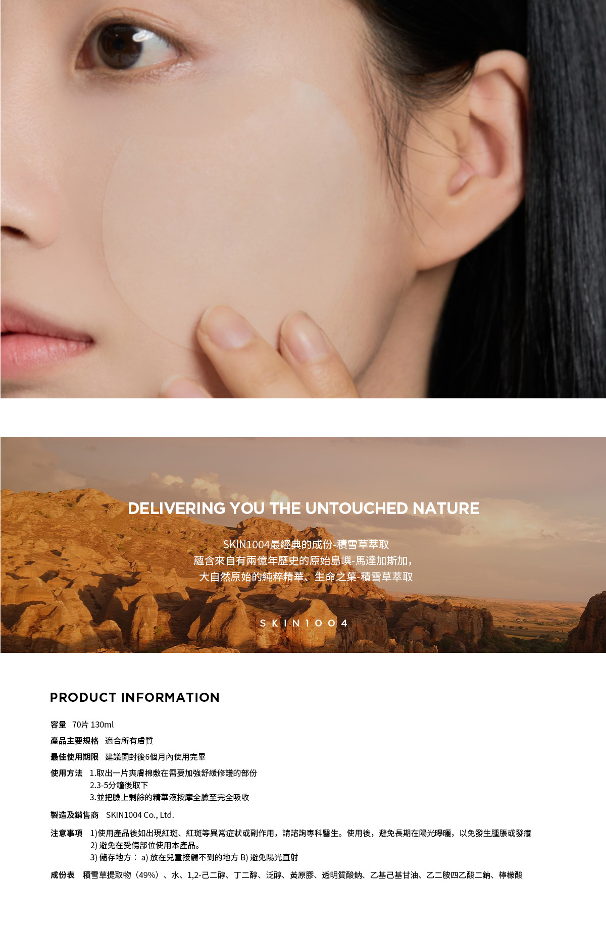 - 敏感肌膚使用前,建議請先於手臂內側測試,或使用前先諮詢醫生,避免肌膚出現不適反應。