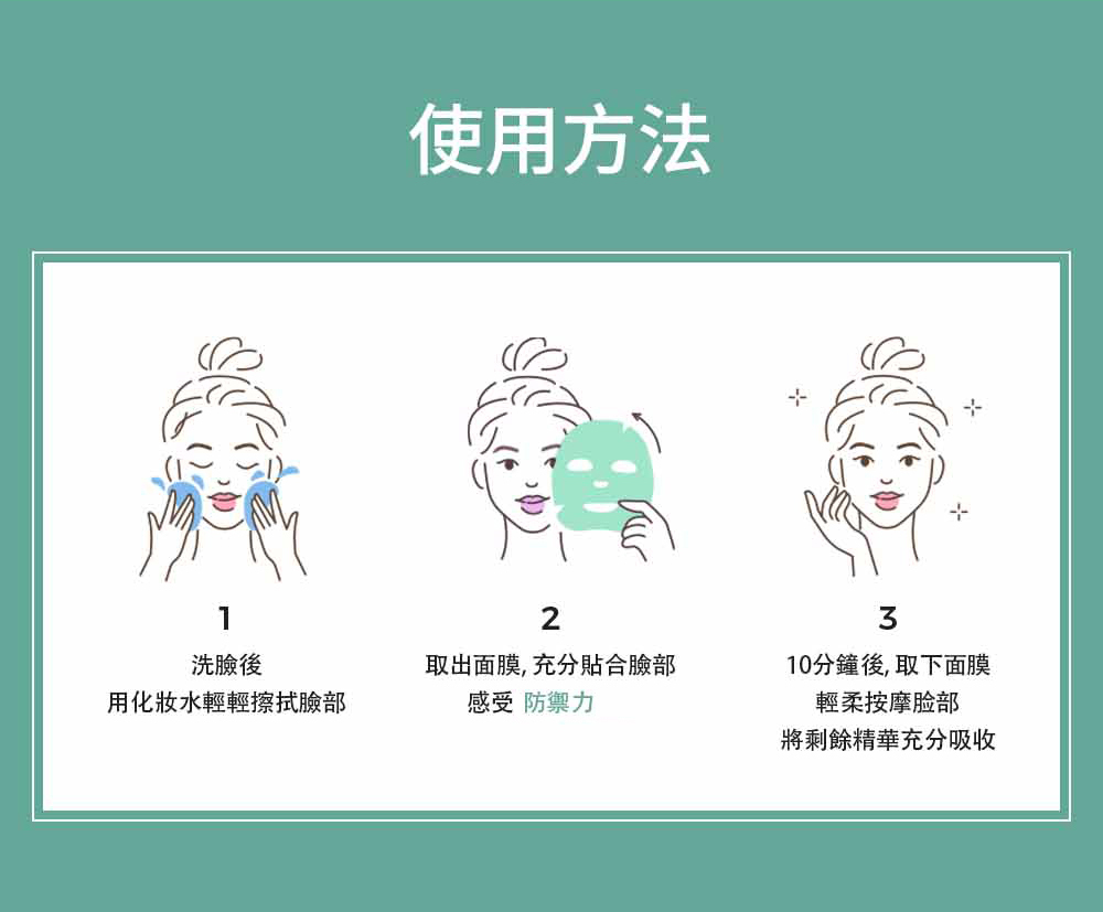 ◆敷臉時間建議10-20分鐘為佳,避免讓肌膚更乾燥。