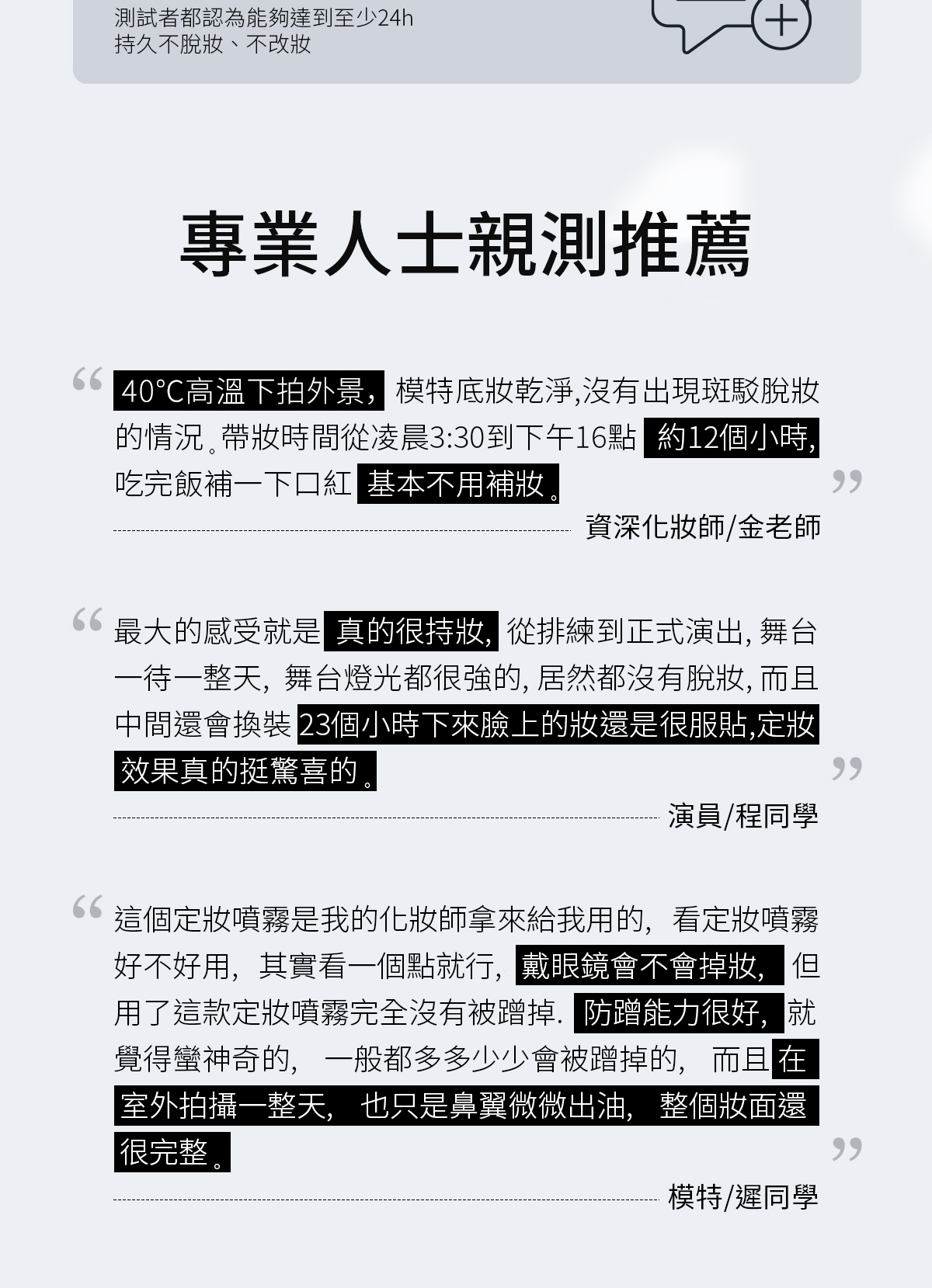 ● 適合人群:超級大油皮,有長時代妝及上鏡需求的人群