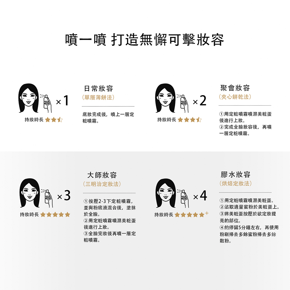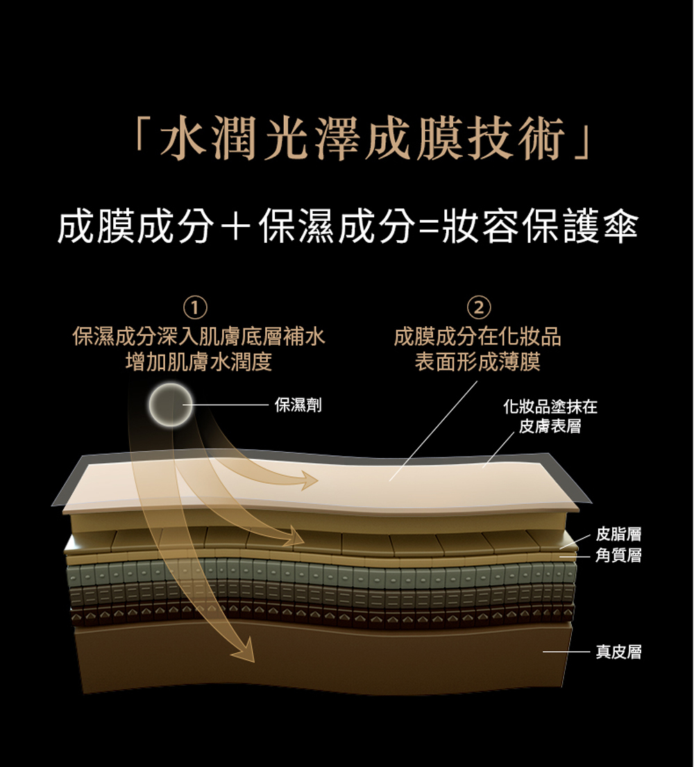 ● 水潤光澤保護膜,達到長時鎖妝